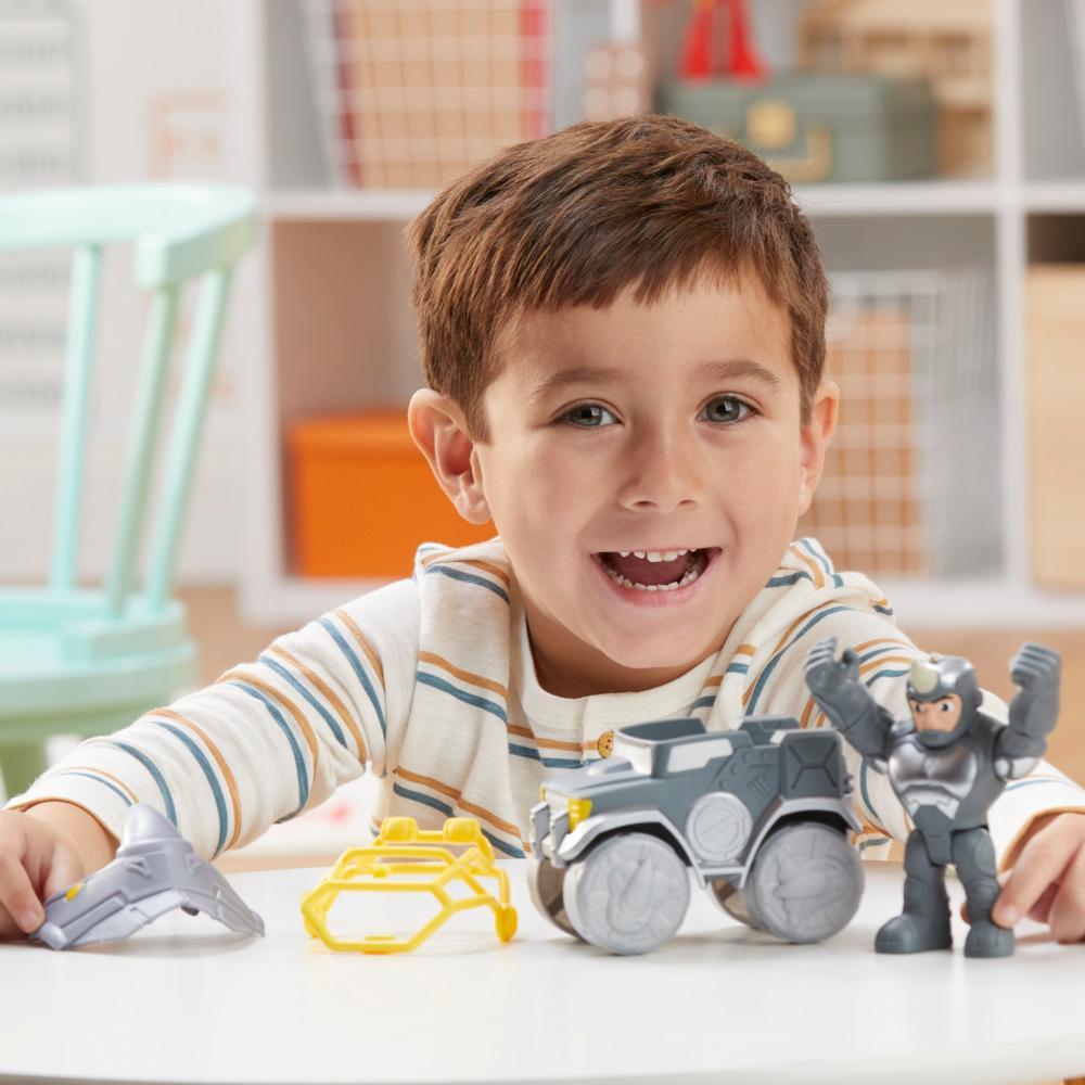 ?RHINO FIGURE AND VEHICLE SET: Race as big baddie Rhino with this Spidey and His Amazing Friends Rhino Wrecker toy set! Playset includes Rhino action figure, vehicle, and 3-in-1 accessory