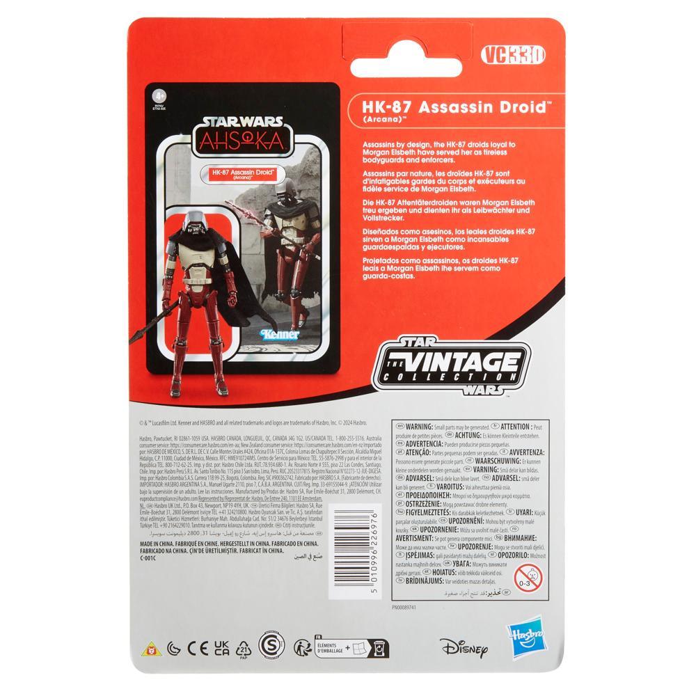 Celebrate the legacy of Star Wars with premium vehicles, playsets, and action figures from Star Wars The Vintage Collection. (Additional products each sold separately. Subject to availability.) Based on the HK-87 Assassin Droid (Arcana) from Star Wars: Ahsoka, this 3.75-inch-scale figure makes a great addition to any fan??s collection. Inspired by the original line, these collectibles feature premium detail and design across product and packaging, as well as collector-grade deco that fans have come to know and love. May the Force be with you!