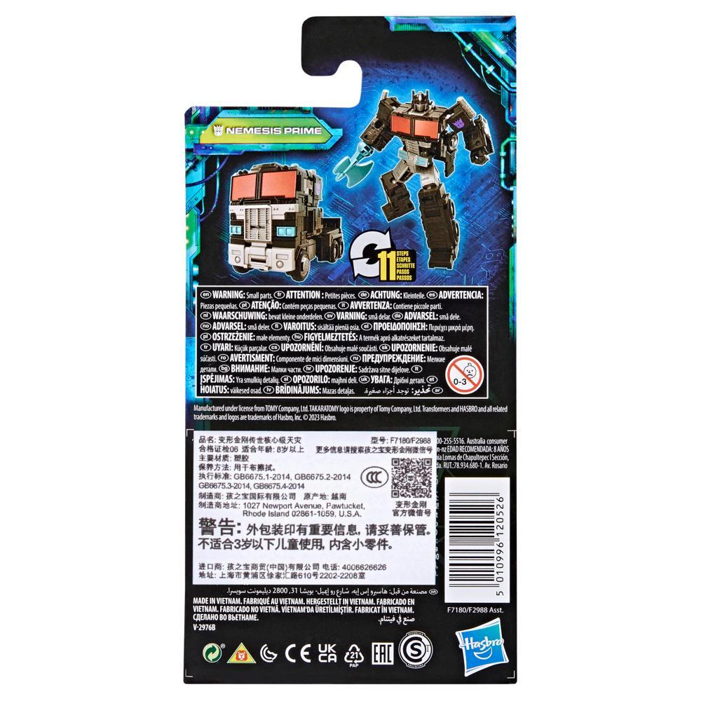 The battle is evolving with the Transformers Legacy Evolution Nemesis Prime action figure! Nemesis Prime is the evil reflection of his namesake. His ruthlessness and lack of restraint make him a deadly opponent. Celebrate the last 40 years of Transformers history with Transformers Legacy action figures for boys and girls. Transformers Legacy opens the portal to a whole new universe of More Than Meets the Eye, bringing together every generation of Transformers like you??ve never seen before. Collect and combine different characters to create your ideal Legacy lineup. Transformers and all related characters are trademarks of Hasbro. Hasbro and all related terms are trademarks of Hasbro.