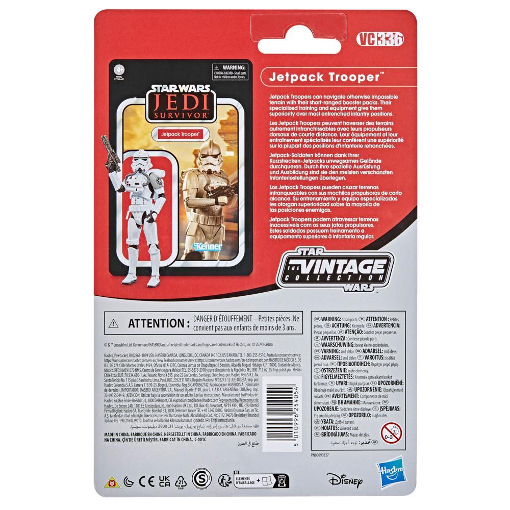 Celebrate the legacy of Star Wars with premium vehicles, playsets, and action figures from Star Wars The Vintage Collection. (Additional products each sold separately. Subject to availability.) Based on a Jetpack Trooper from Star Wars Jedi: Survivor, this 3.75-inch-scale figure makes a great addition to any fan??s collection. Inspired by the original line, these collectibles feature premium detail and design across product and packaging, as well as collector-grade deco that fans have come to know and love. May the Force be with you!