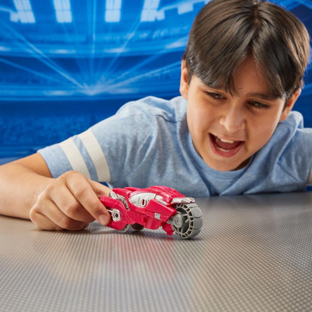 Experience the epic origins of legendary Transformers robots with these Transformers One Battling Robots action figures! This 4.5-inch (11.5 cm) Elita-1 figure converts from robot to Cybertronian motorcycle mode in 3 steps, with simple conversion perfect for Transformers fans age 6 and up. Place the action figure on the Battle Base and slide the finger slots for cool action moves! The figure has articulated head, arms, and legs for awesome action poses. Includes a Battle Base and a sword that attaches in robot mode. This Robot Battlers action figure is inspired by an iconic character from the Transformers movie, Transformers One. Movie-inspired Interactive toys make cool gifts for boys and girls ages 6 and up. Transformers One is the untold origin story of Optimus Prime and Megatron, once friends bonded like brothers, who changed the fate of Cybertron forever.
